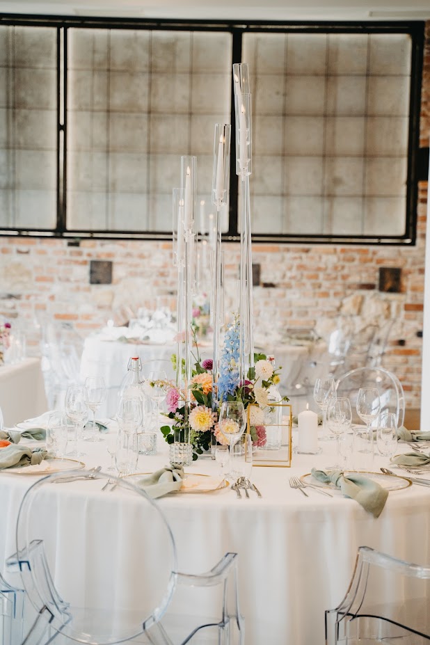 Dekoracje ślubne mieliśmy przyjemność wykonać w pięknej sali Dwie Rzeki w Balicach, gdzie zarówno obrusy jak i serwety i podtalerze są wysokiej jakości, a wnętrza dwóch sal obłędnie piękne <3