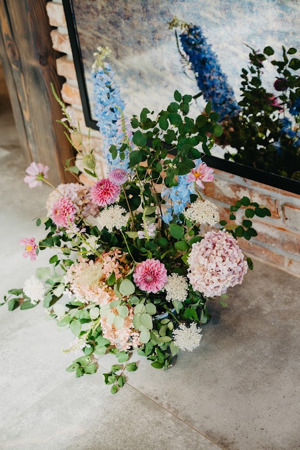 Nasza najbardziej kolorowa realizacja w sezonie 2024! Praca z kolorem nie jest łatwa – trzeba dobrać kwiaty tak aby efekt nie był zbyt intensywny.